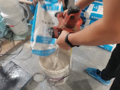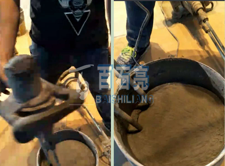 魔石干粉砂漿應(yīng)用專(zhuān)用的攪拌設(shè)備進(jìn)行攪拌,攪拌時(shí)依據(jù)產(chǎn)品說(shuō)明按照嚴(yán)格的水灰比,先將計(jì)算好的水加入容器中,開(kāi)動(dòng)攪拌機(jī)器的同時(shí)加入魔石砂漿,在攪拌器內(nèi)充分?jǐn)嚢?。攪拌時(shí)間不少于 3分鐘,靜漿1分鐘,再攪拌1分鐘,且不得因攪拌過(guò)度而產(chǎn)生變色。攪拌至無(wú)結(jié)塊,同時(shí)要觀測(cè)其流動(dòng)性以確保濃度。由于加水量過(guò)多會(huì)導(dǎo)致降低強(qiáng)度,因此不能隨意增加水量。