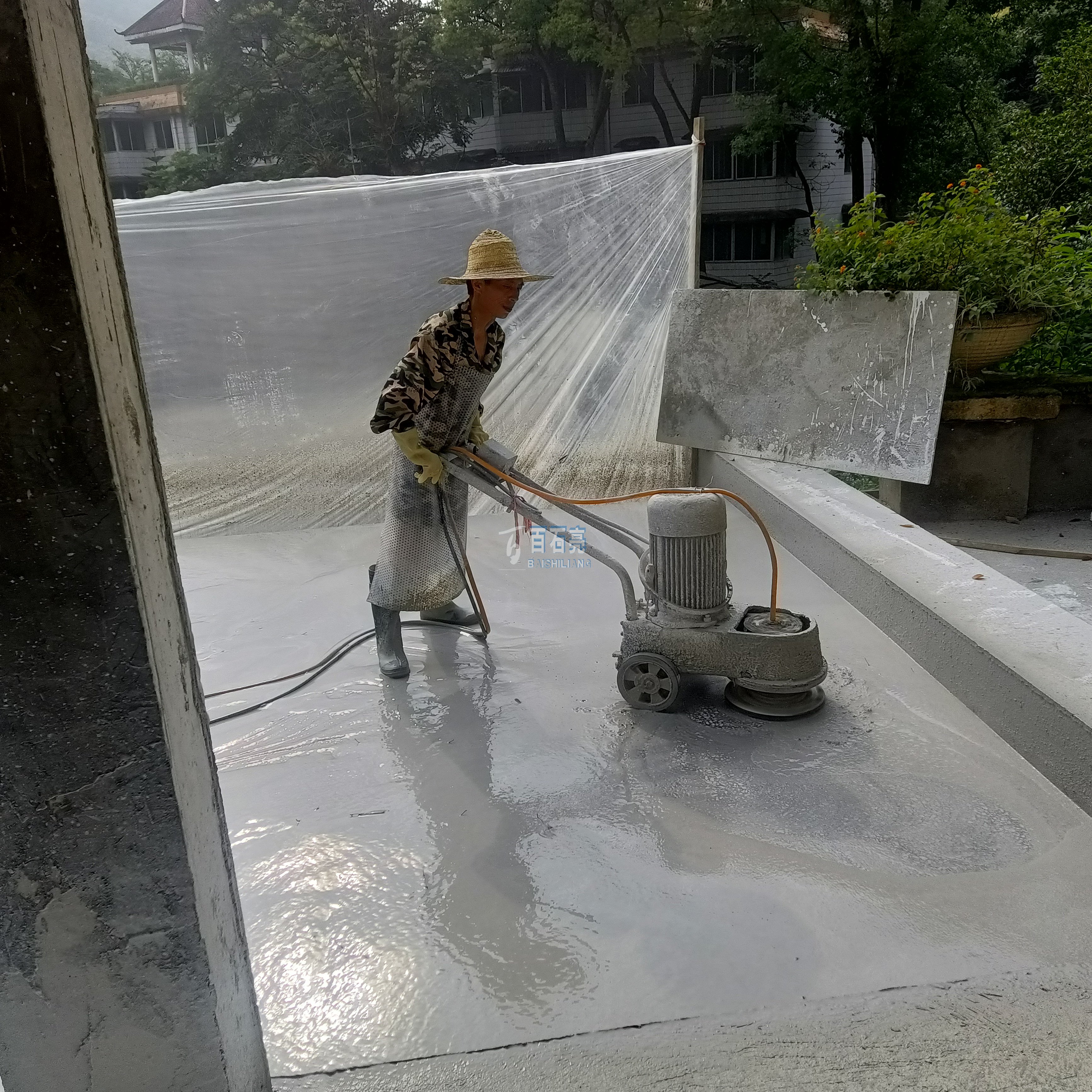 - 渝北壹江郡花園水磨石 這是一款由白色水泥加白色骨料 均勻混合而成的水磨石 用在花園地面 光滑又平整 清新自然 攤鋪 將混合均勻的水磨石材料攤鋪在地面上厚度1.5-2公分。 使用靠尺...