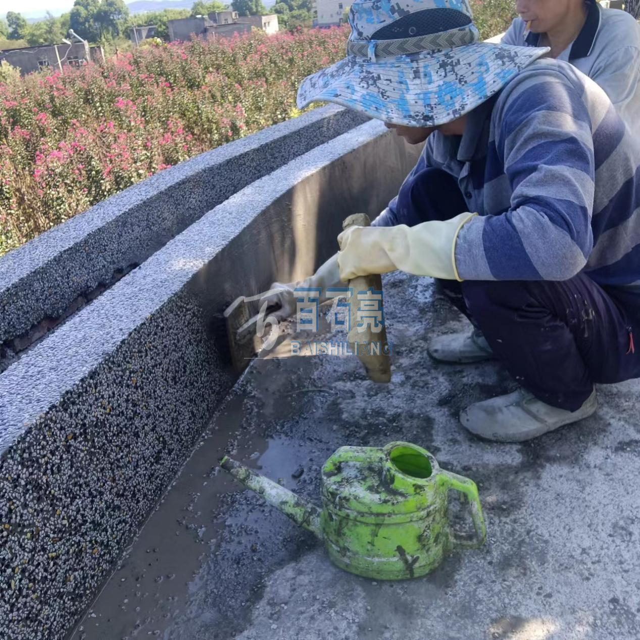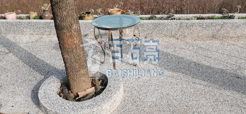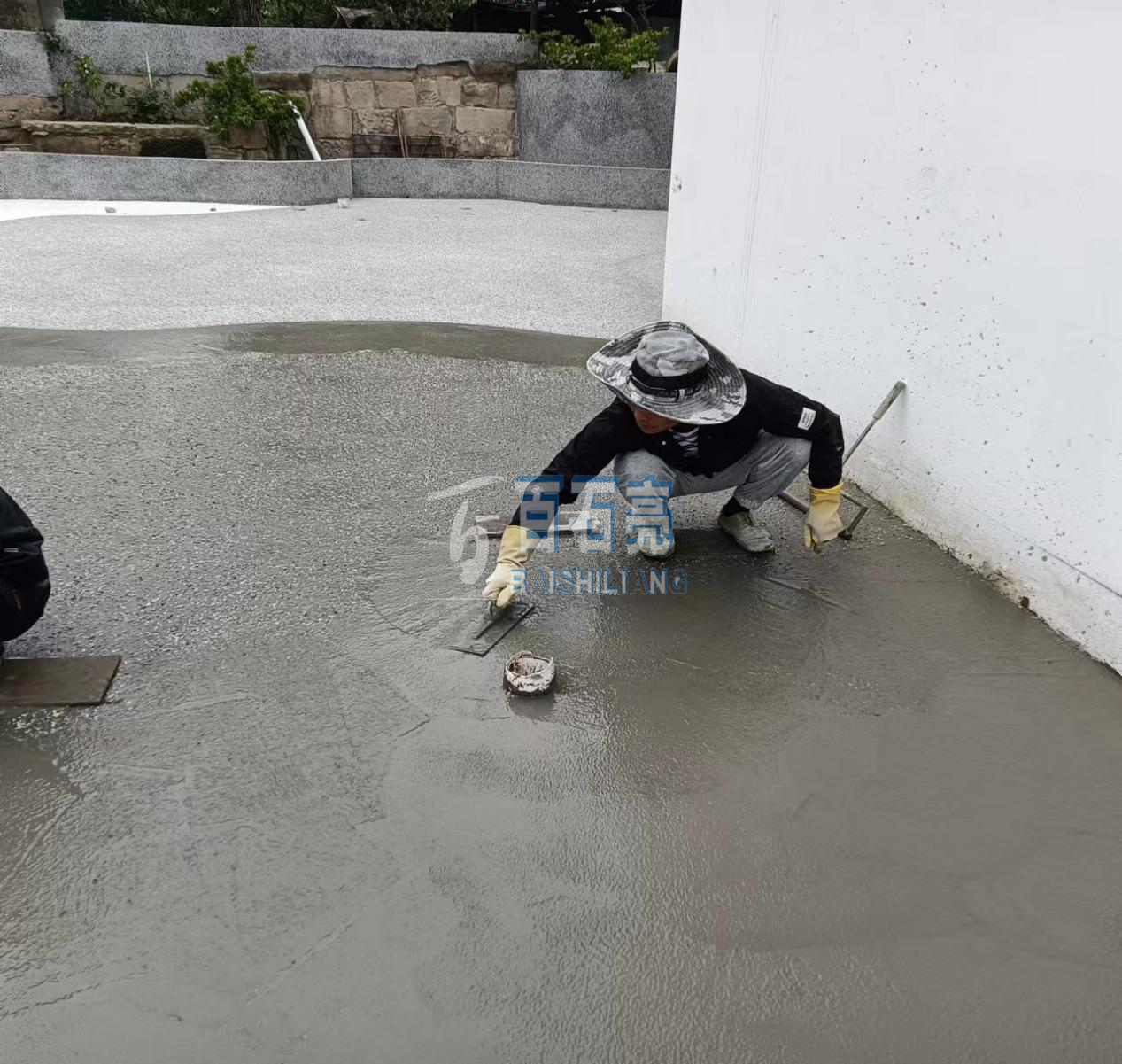 - 渝北壹江郡花園水磨石 這是一款由白色水泥加白色骨料 均勻混合而成的水磨石 用在花園地面 光滑又平整 清新自然 攤鋪 將混合均勻的水磨石材料攤鋪在地面上厚度1.5-2公分。 使用靠尺...
