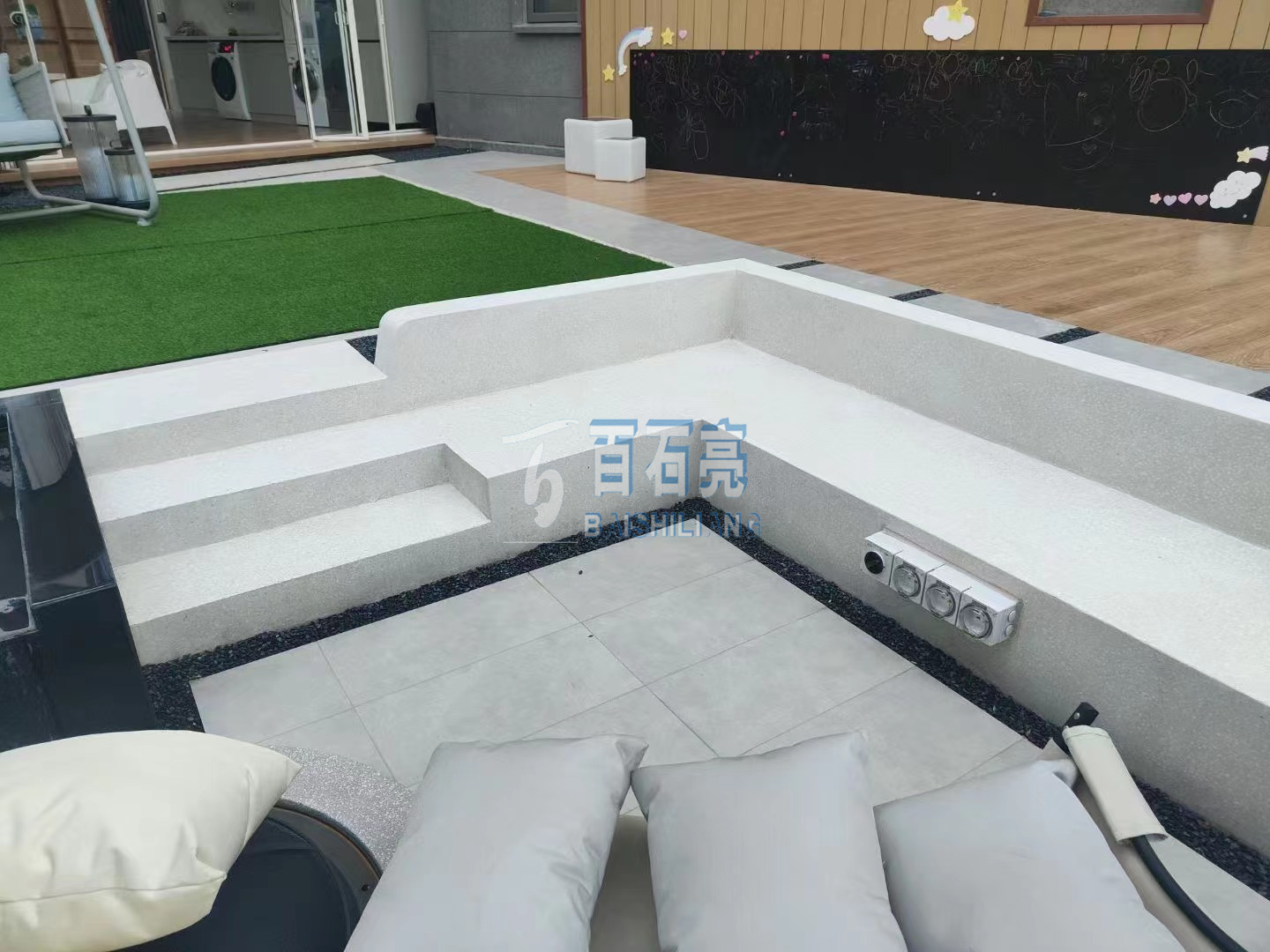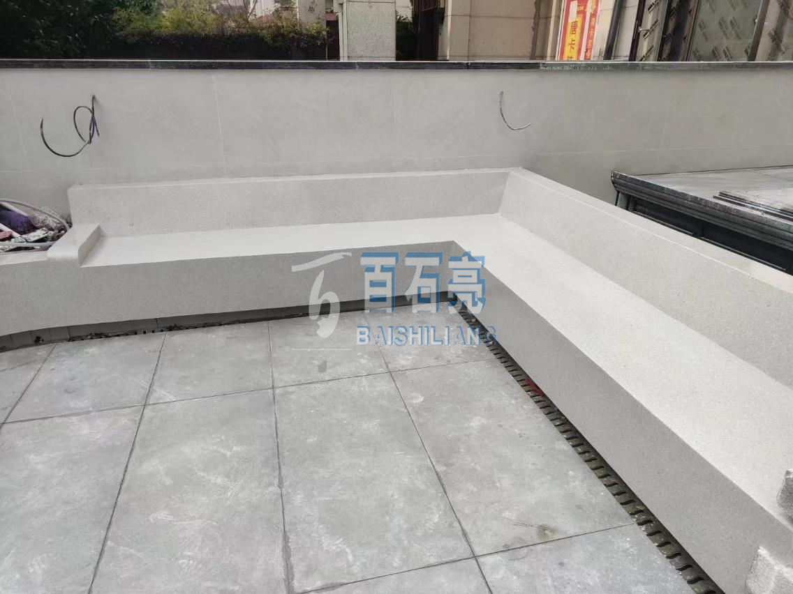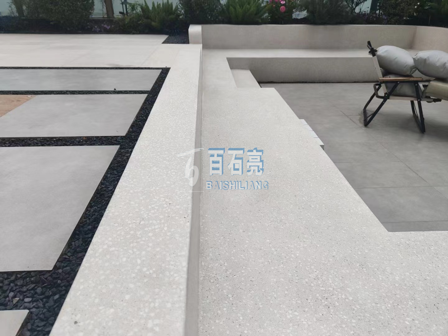 此項(xiàng)目位于重慶市渝北大竹林,小區(qū)屬于高檔小區(qū),業(yè)主家是的風(fēng)格是現(xiàn)代園林風(fēng)格,花園的坐凳、花臺、梯度都是采用的現(xiàn)在比較流行高端耐磨、耐腐蝕、易造型,潔凈度高的無機(jī)水磨石。白色的無極水磨石加上旁邊的綠植,讓整個花園錯落有致,有聲有色,具有濃郁的詩情畫意。