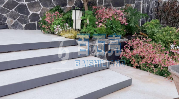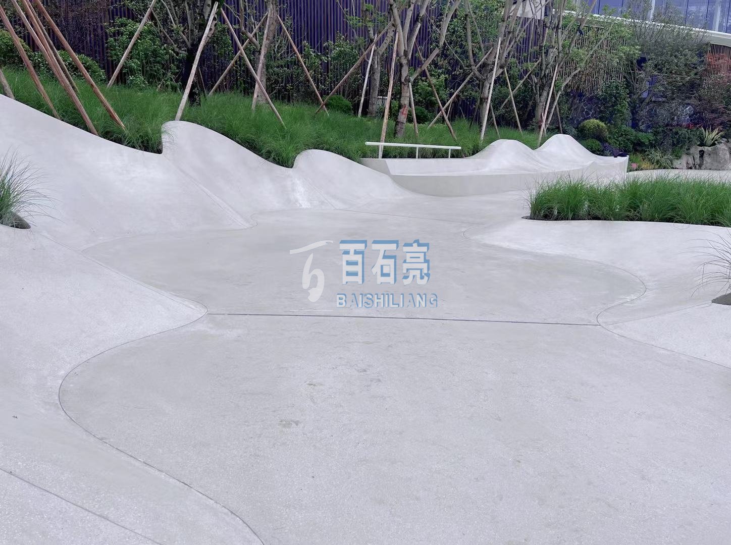 這樣的無(wú)機(jī)磨石,與景觀(guān)、綠植完美結(jié)合,充分的體現(xiàn)出一種干凈、純粹、夏季清爽的感覺(jué),白色與綠色相搭配,一點(diǎn)也沒(méi)有違和感。