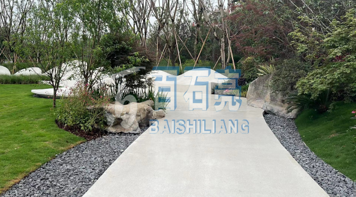 - 渝北壹江郡花園水磨石 這是一款由白色水泥加白色骨料 均勻混合而成的水磨石 用在花園地面 光滑又平整 清新自然 攤鋪 將混合均勻的水磨石材料攤鋪在地面上厚度1.5-2公分。 使用靠尺...