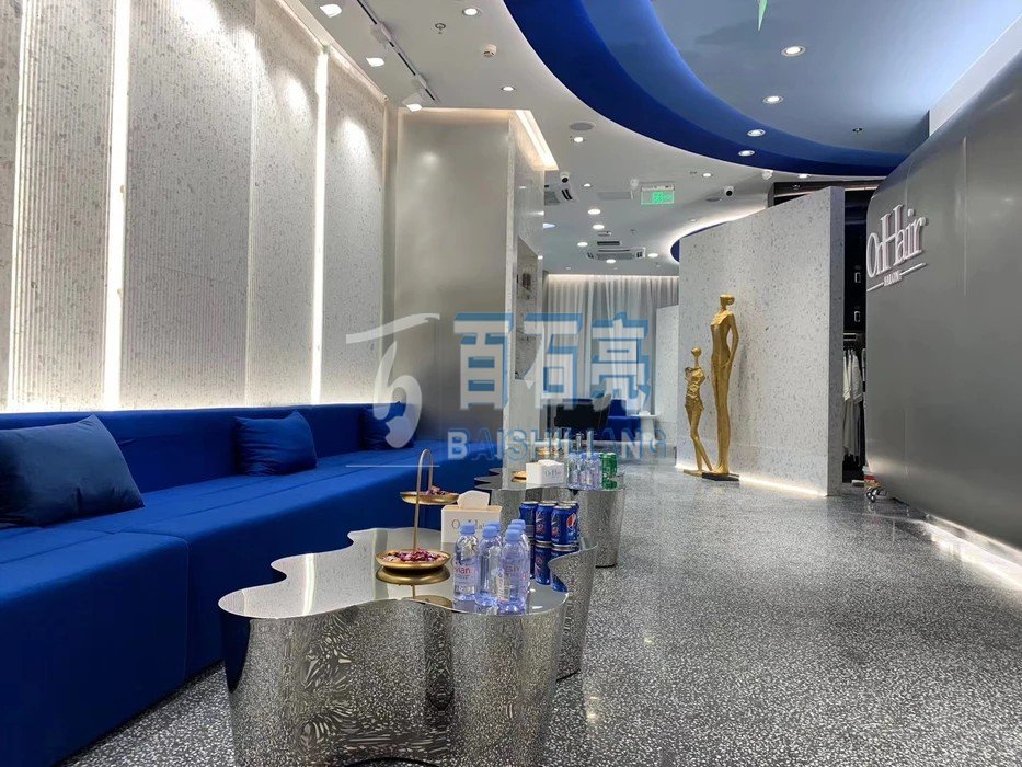 無(wú)機(jī)磨石的底料是高聚合物特種水泥、無(wú)機(jī)礦粉,再加入添加劑組成的新型材料。