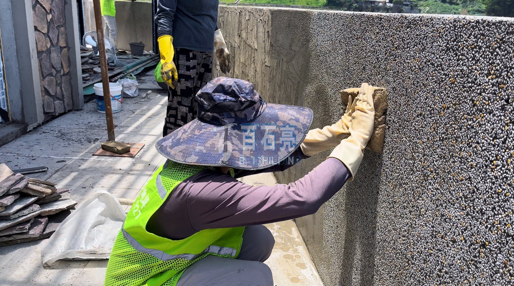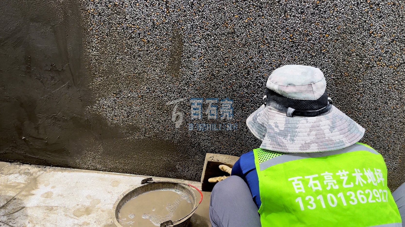- 渝北壹江郡花園水磨石 這是一款由白色水泥加白色骨料 均勻混合而成的水磨石 用在花園地面 光滑又平整 清新自然 攤鋪 將混合均勻的水磨石材料攤鋪在地面上厚度1.5-2公分。 使用靠尺...
