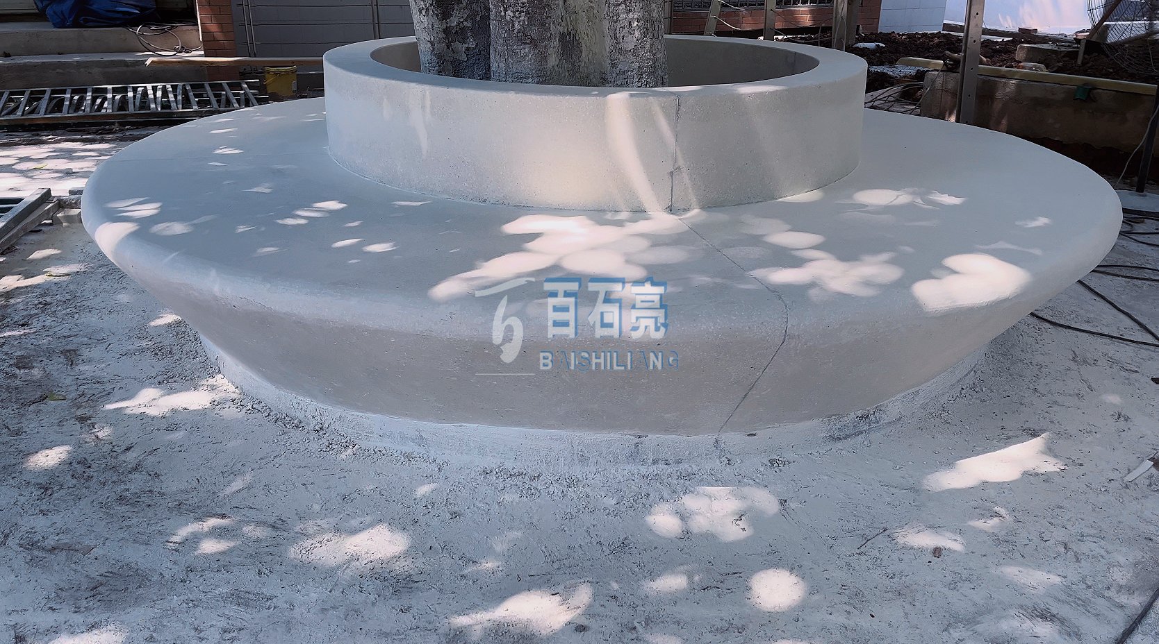 這是位于袁家崗的一個(gè)居民游園,要做水磨石的區(qū)域是花池坐凳,主要是由白色基底加3-5的白色骨料混合均勻組成的。