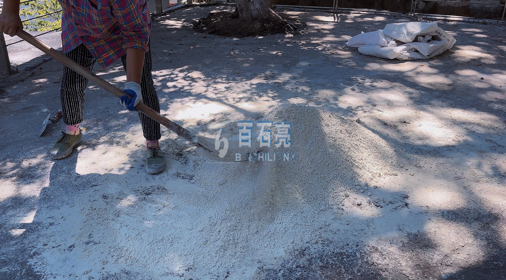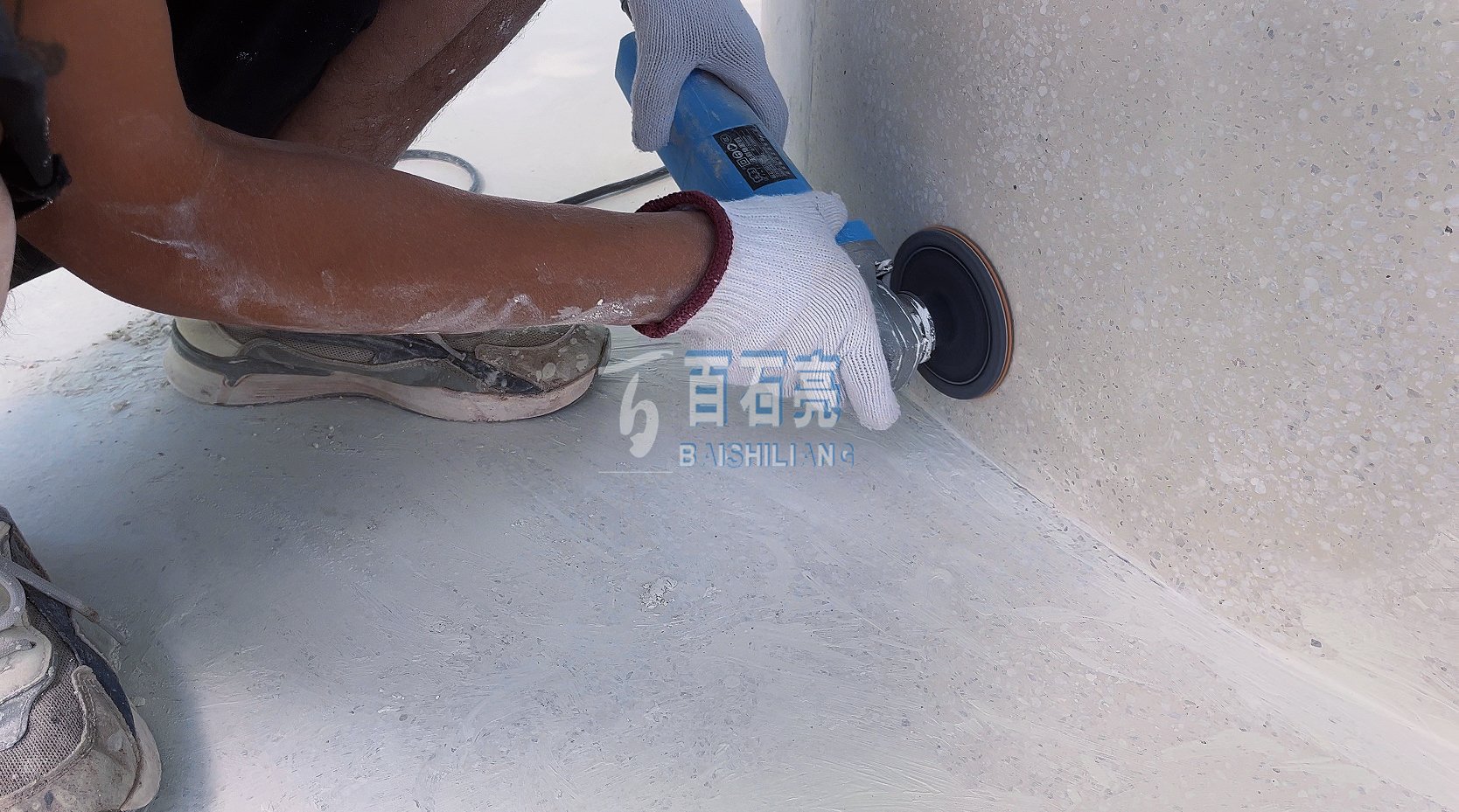 - 渝北壹江郡花園水磨石 這是一款由白色水泥加白色骨料 均勻混合而成的水磨石 用在花園地面 光滑又平整 清新自然 攤鋪 將混合均勻的水磨石材料攤鋪在地面上厚度1.5-2公分。 使用靠尺...