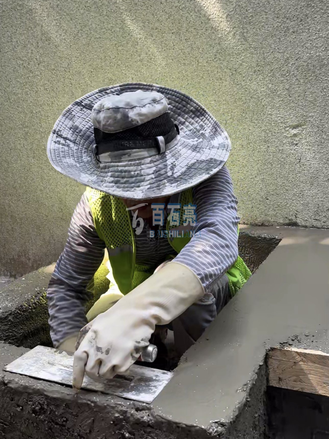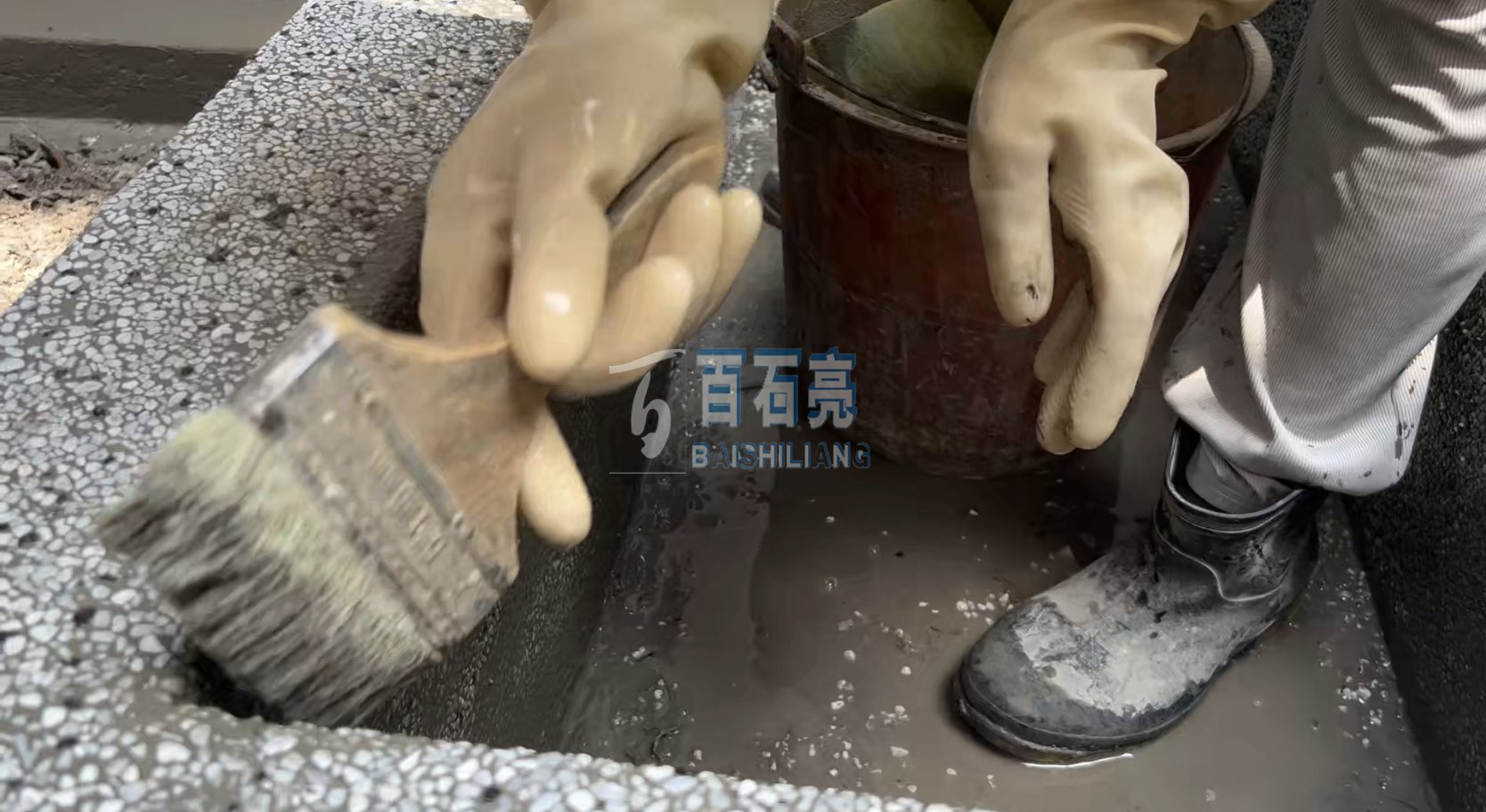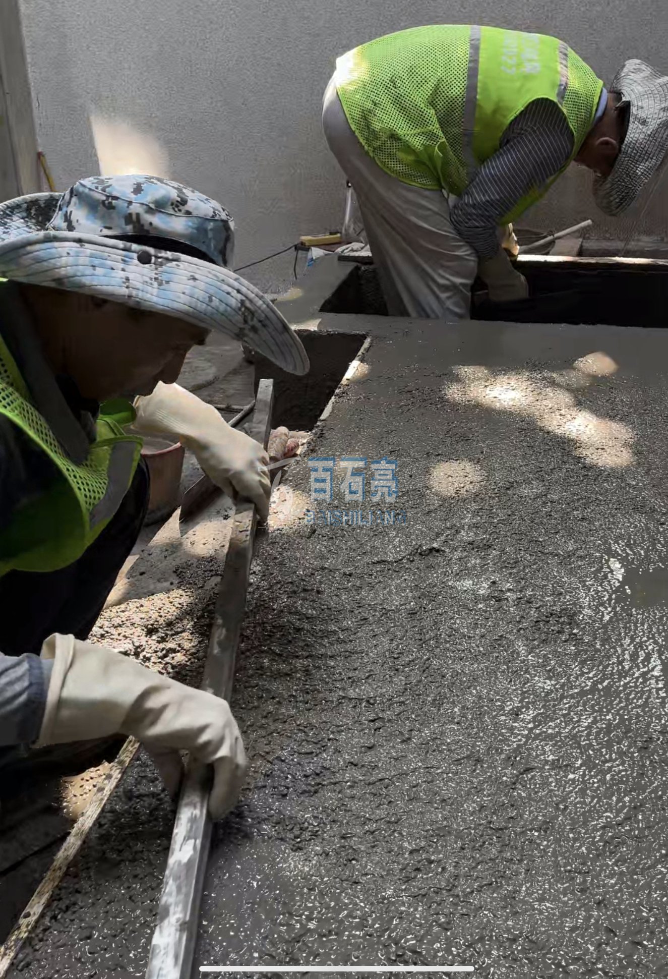 - 渝北壹江郡花園水磨石 這是一款由白色水泥加白色骨料 均勻混合而成的水磨石 用在花園地面 光滑又平整 清新自然 攤鋪 將混合均勻的水磨石材料攤鋪在地面上厚度1.5-2公分。 使用靠尺...