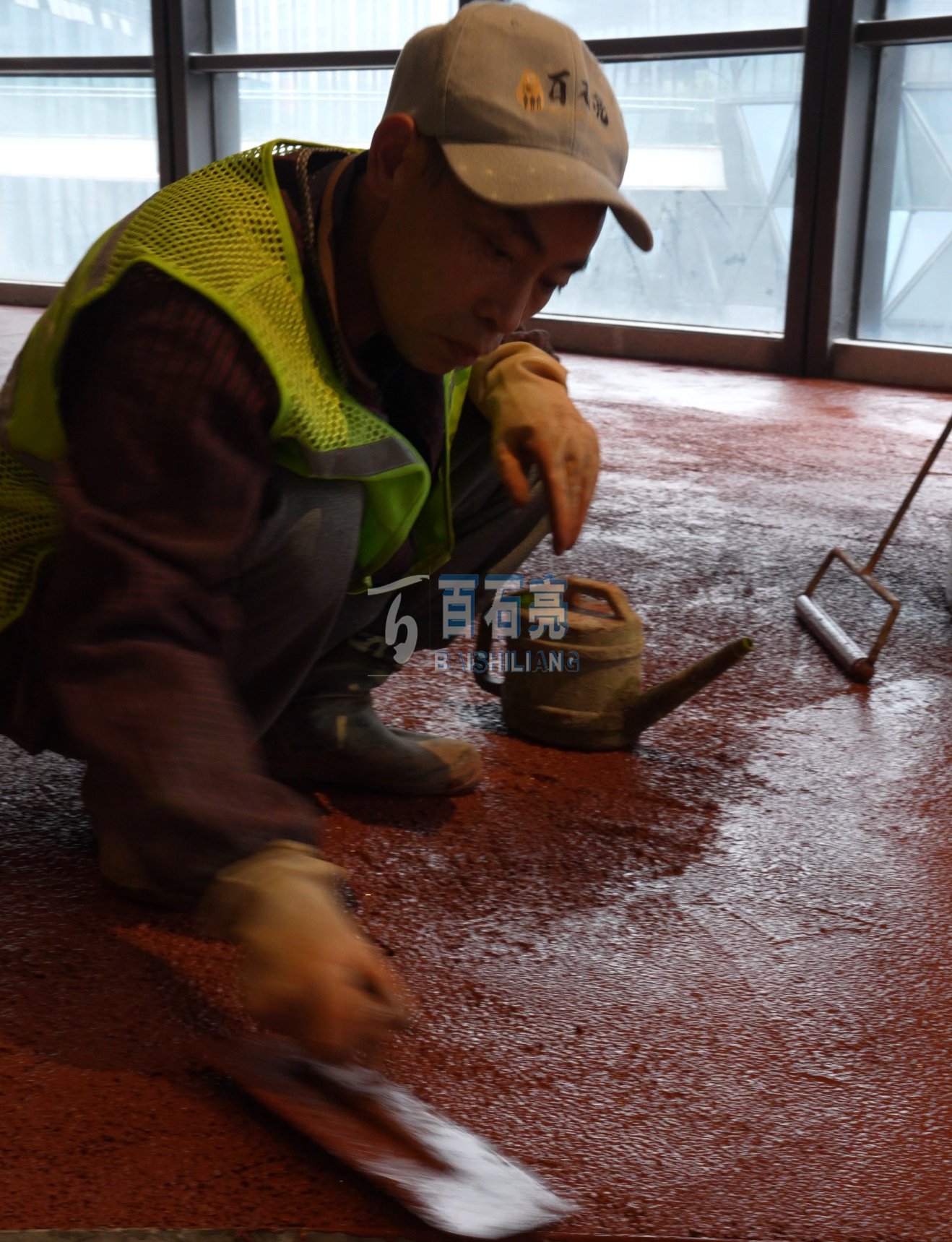 今天我們水洗石項目位于大坪時代天街。客戶選擇做的水洗石是深紅色系列的水洗石主要材質(zhì)是3-5的紅色黑色石子。選擇做水洗石的地方是位于商場里面的一個咖啡店。話不多說,現(xiàn)在我們一起去看水洗石的施工流程首先就是把攪拌好的水洗石均勻攤鋪在地面上再反復(fù)的收平壓密實等到1-3小時左右就把水洗石給洗出來。