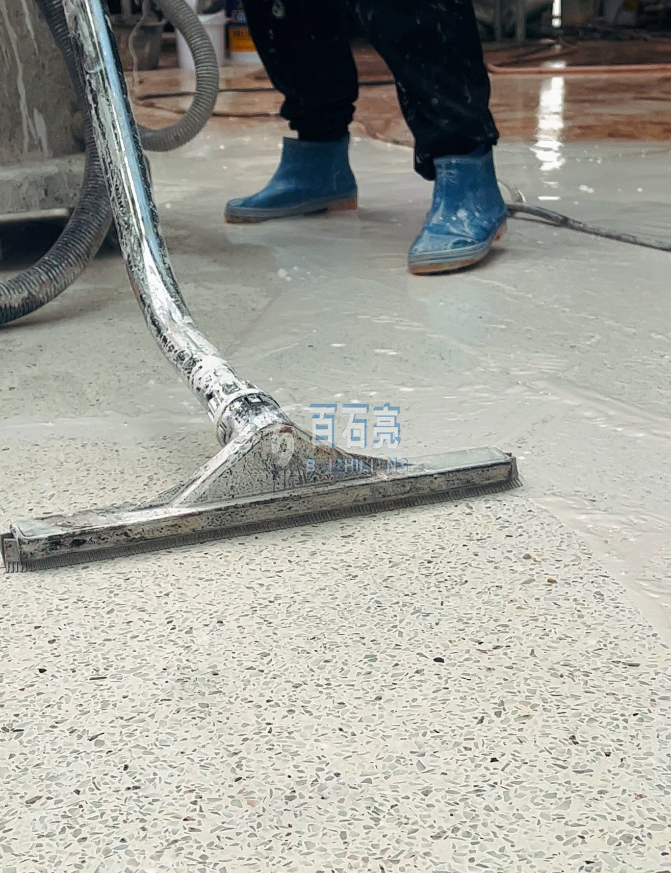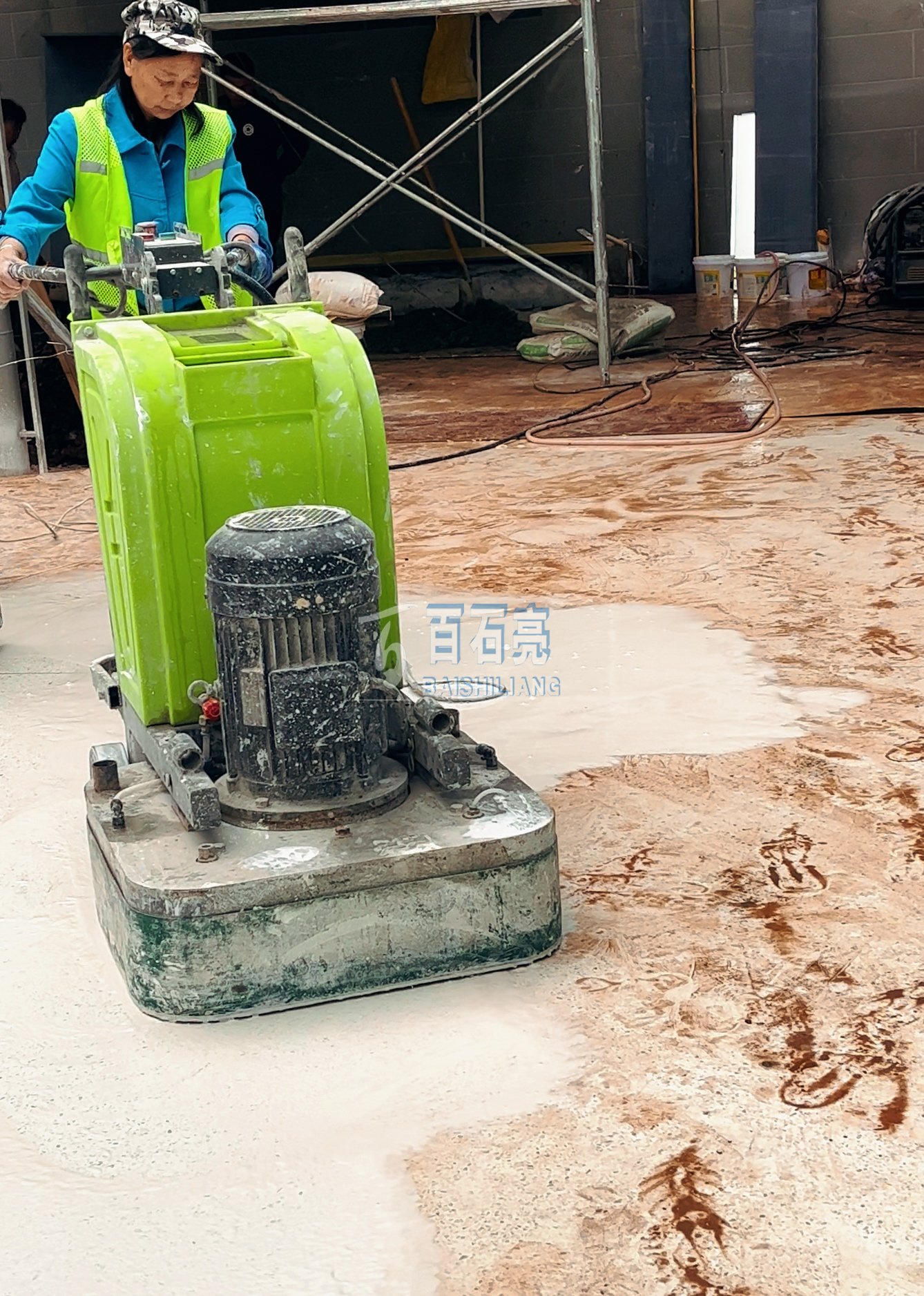 攤鋪好之后的水磨石,養(yǎng)護(hù)一周左右,就可以進(jìn)行打磨了。