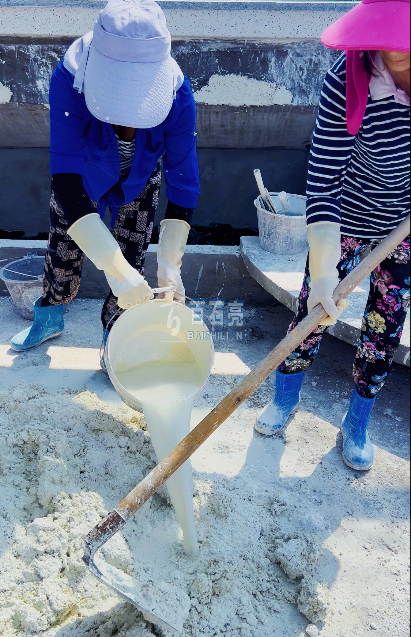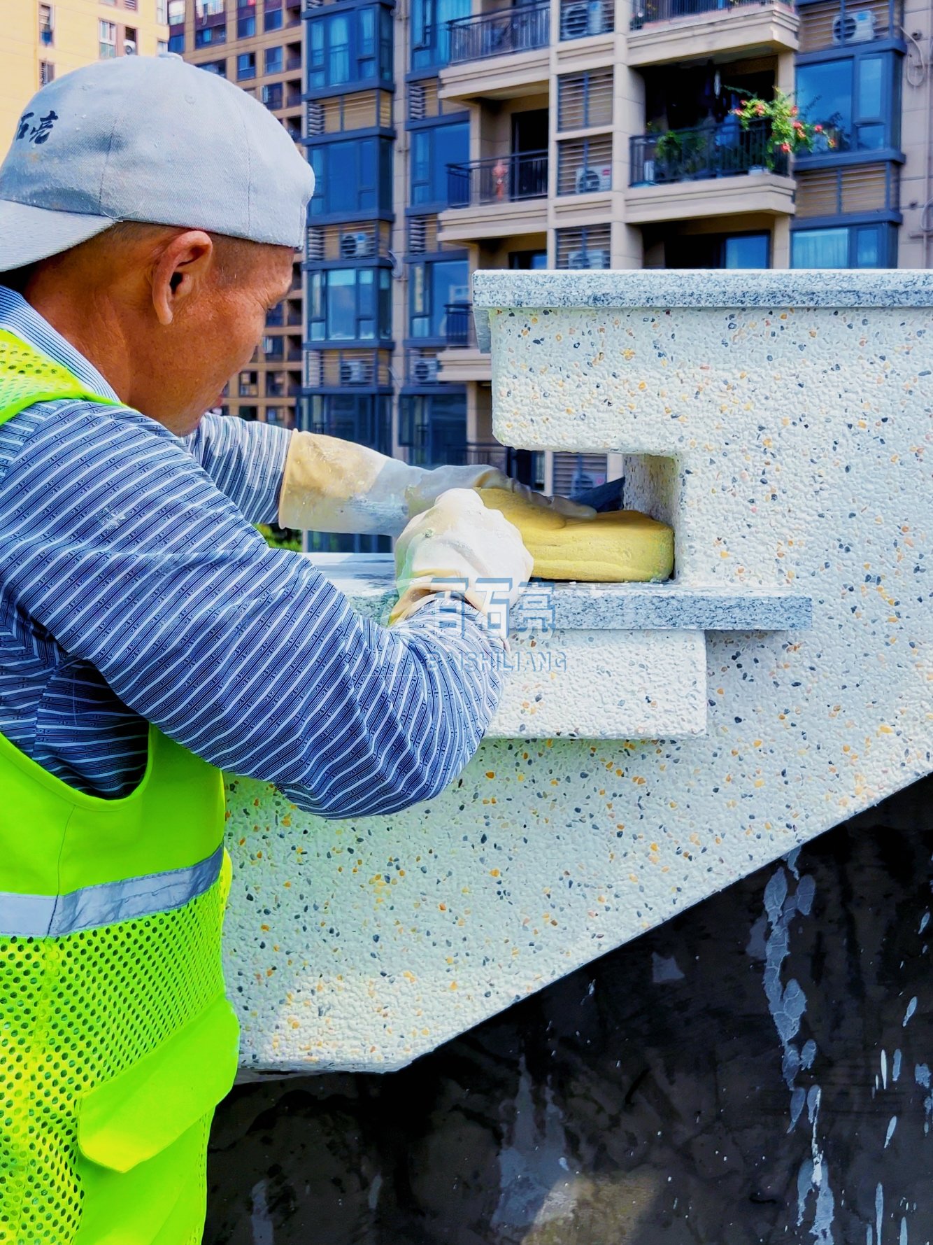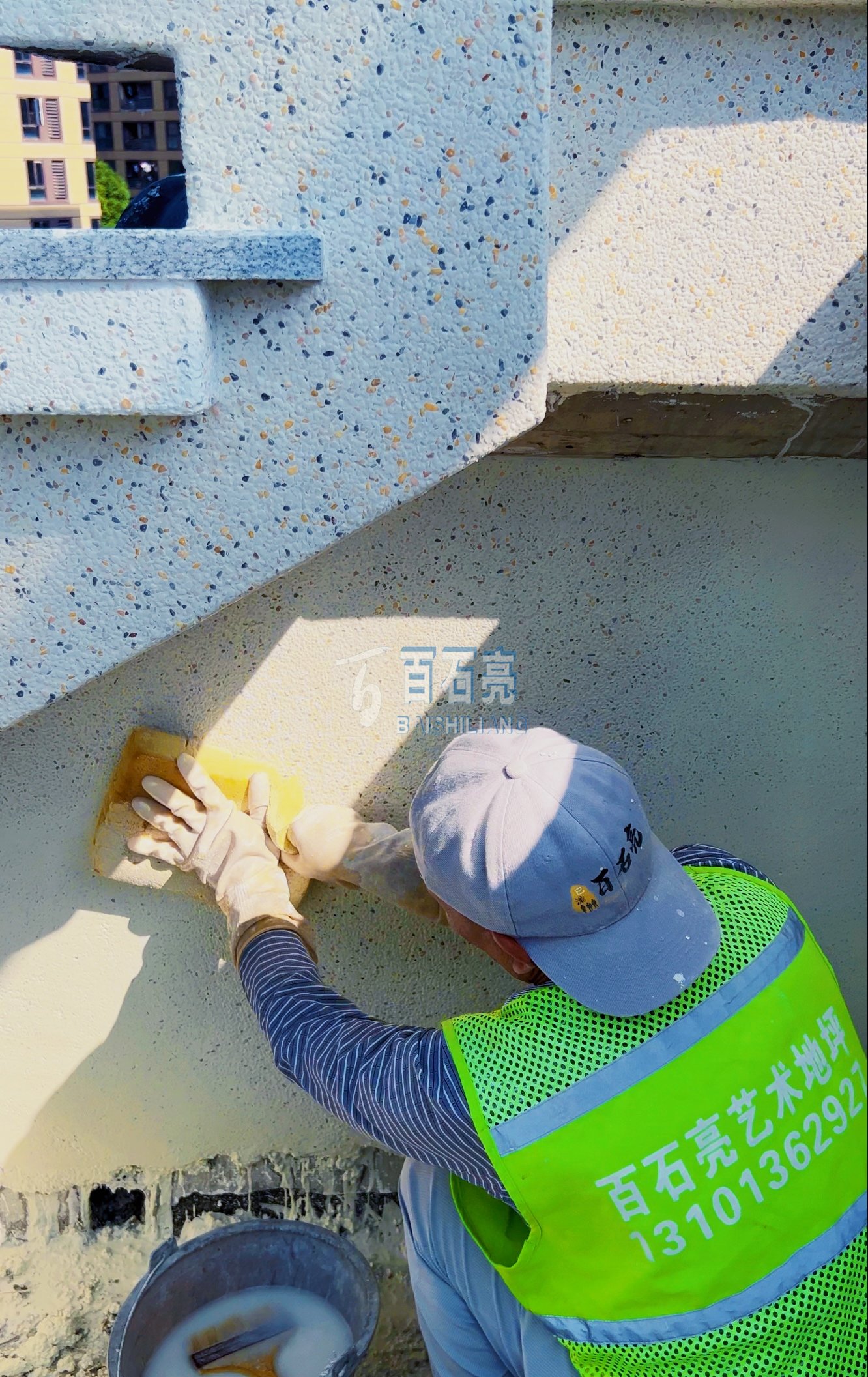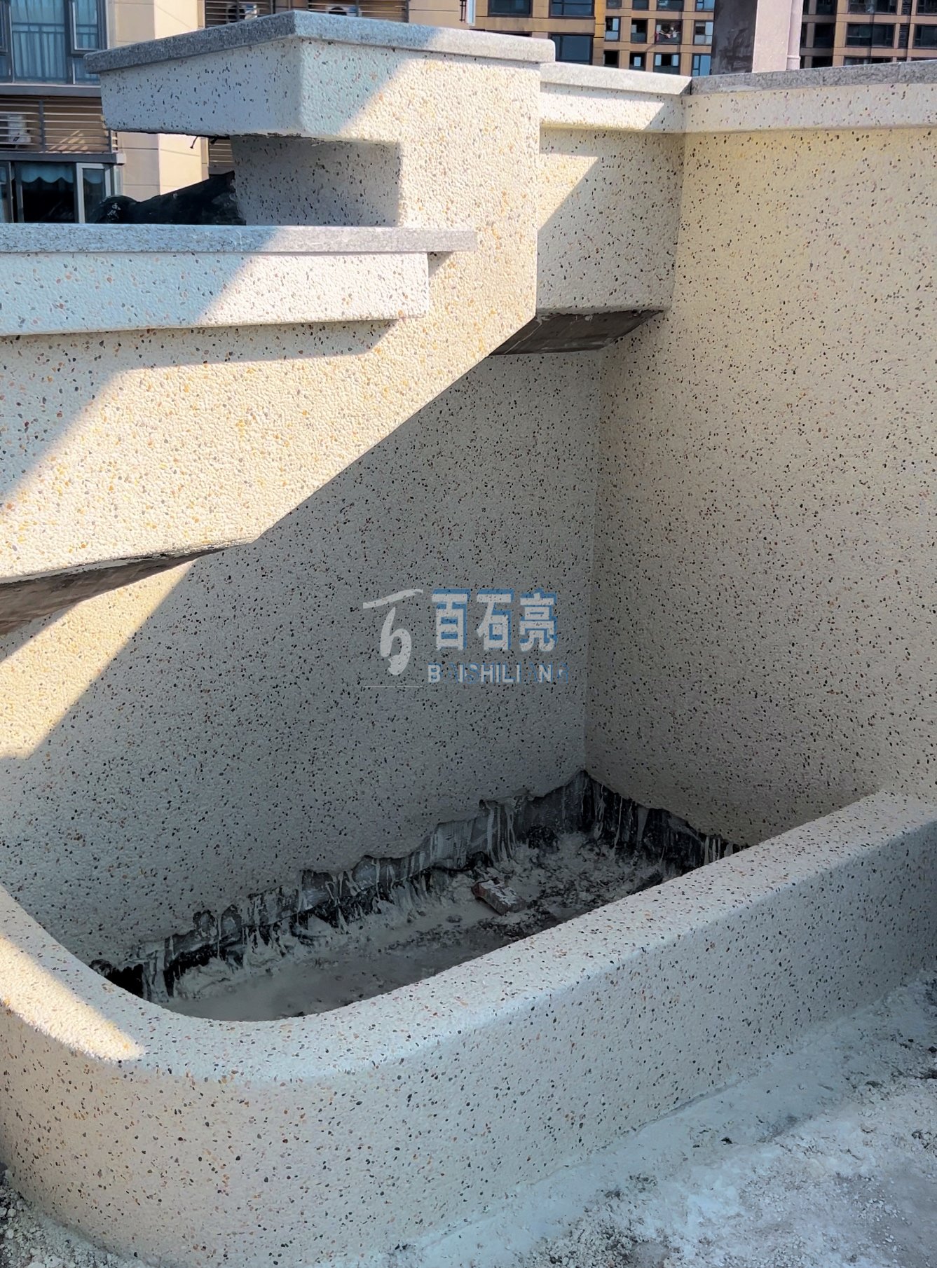 客戶選用的是我們的爆款系水洗石,是由白色的水泥與3-5的白色、灰色、黃色骨料加水均勻配比而成的。