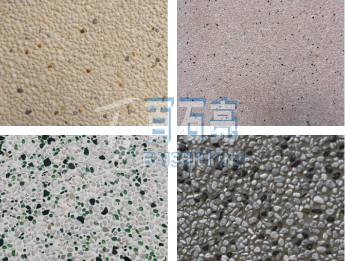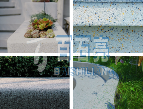 水洗石:表面經(jīng)過水洗處理,使顆粒暴露出來,呈現(xiàn)出天然石料的質(zhì)感和顆粒感,外觀粗糙、自然,具有較強(qiáng)的野性美感。