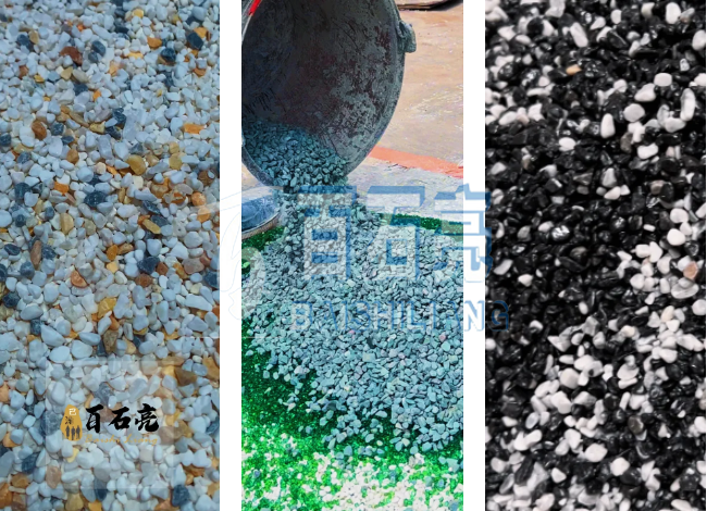 水洗石:一般采用天然石料或人工制造的仿天然石材,如花崗巖、石英、玻璃等造型圓潤(rùn)光滑的骨料,規(guī)格大多為2-4、3-5、4-6。
