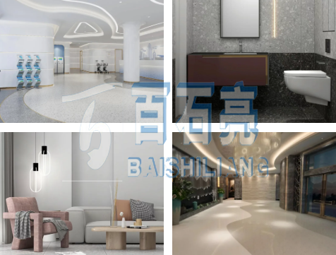 水磨石:水磨石的光滑、高檔的外觀適用于室內(nèi)地面、墻壁、臺(tái)面等裝飾,常見于商業(yè)建筑、辦公場(chǎng)所、酒店等。