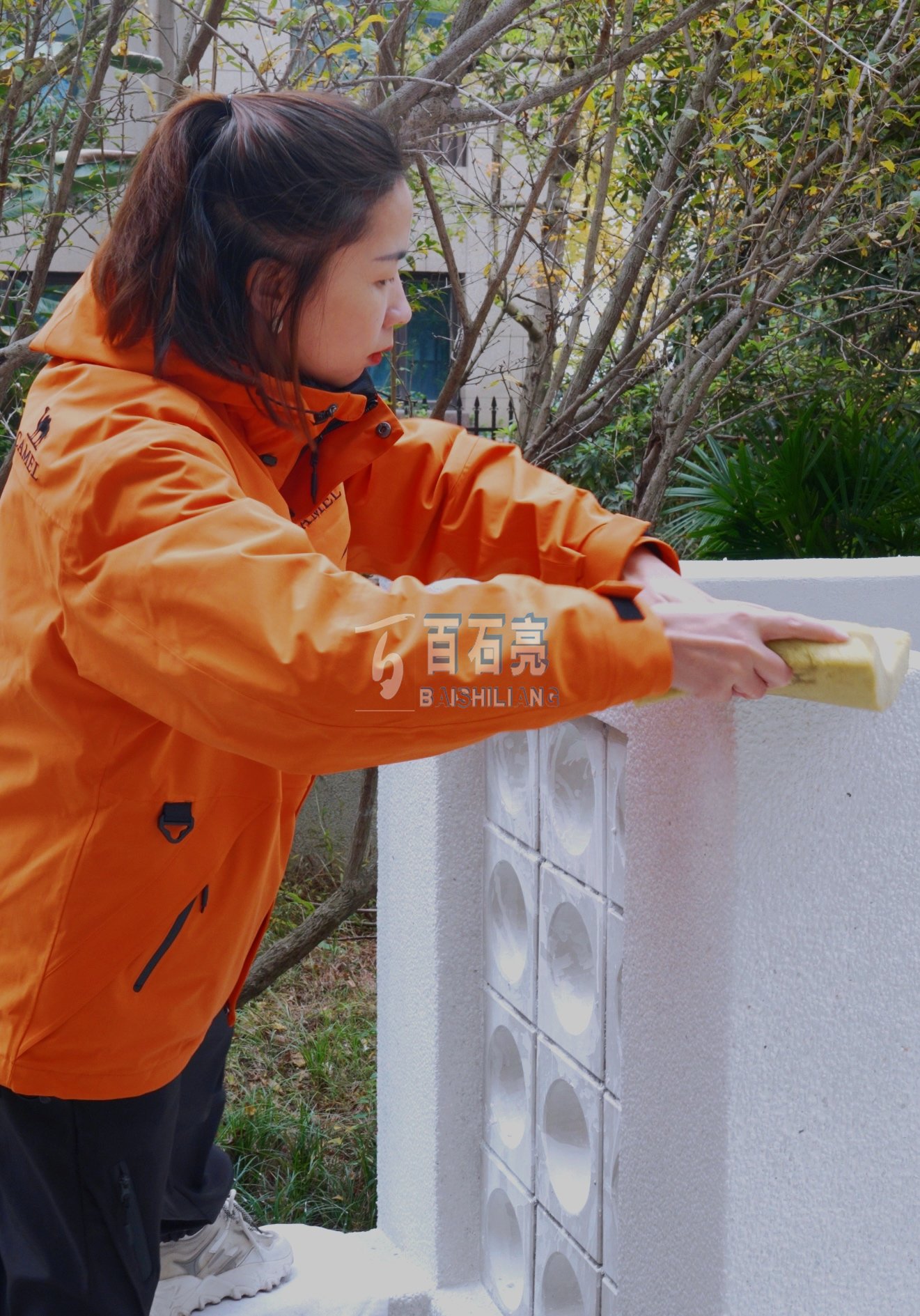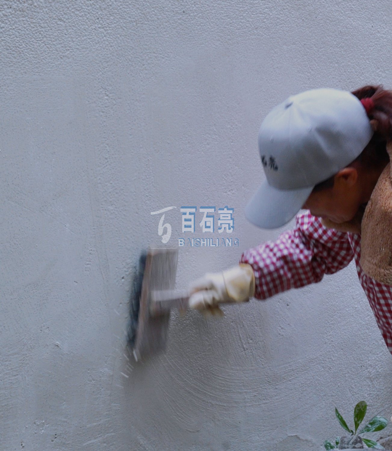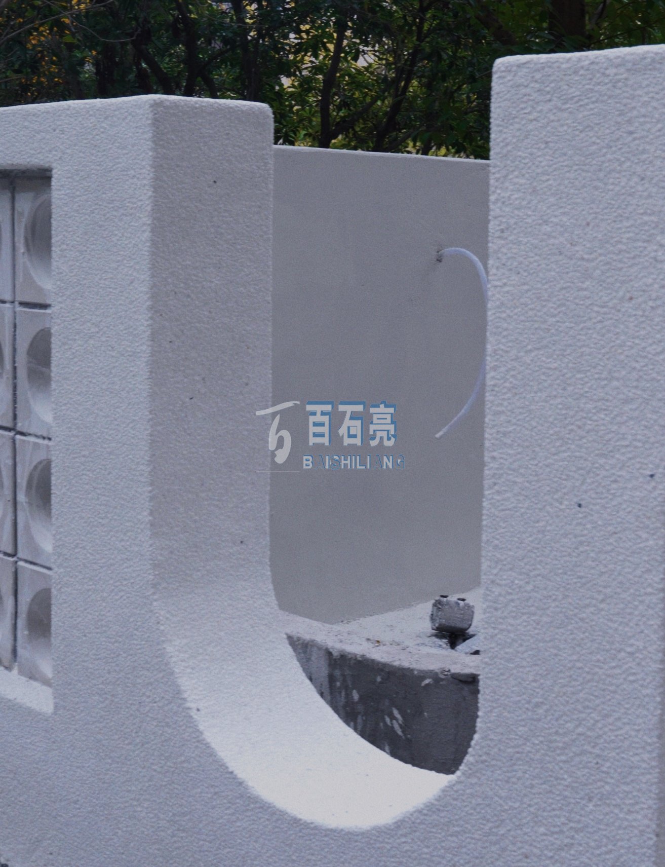 將攪拌好的材料攤鋪在平面或者是立面上。攤鋪要盡量保證水洗石平整度一致,攤鋪立面的難度比平面的大很多,對師傅的技術(shù)有很大考驗的。