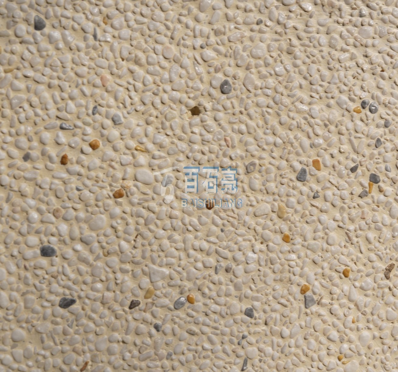 水洗石是一種裝飾做法,選用天然河、海卵石或礫石與水泥按一定比例拌和,涂抹在基層上,用負(fù)重工具壓平,將表面粘合物處理干凈,露出石子原貌的一種裝飾做法。它類似于70—80年代流行的水刷石工藝。水洗石主要用于園林景觀、庭院設(shè)計(jì)等領(lǐng)域,能夠提供自然純樸的感覺。