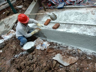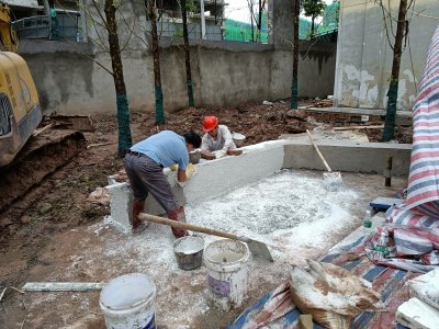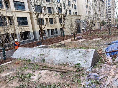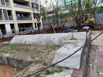 水磨石花池坐凳進場前的現(xiàn)場:
