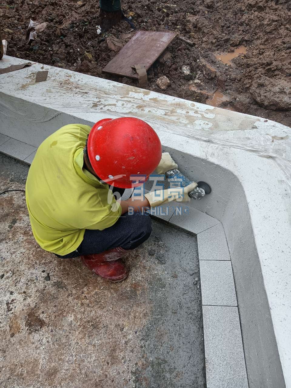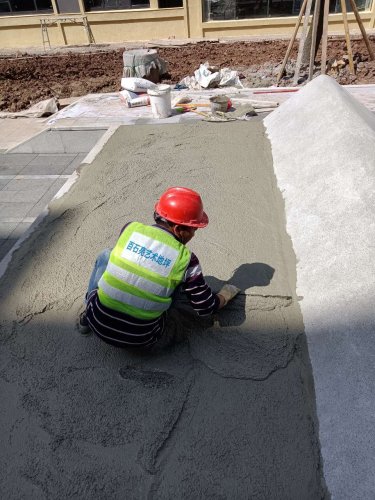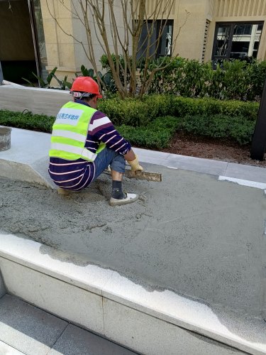 水磨石花池坐凳攤鋪現(xiàn)場: