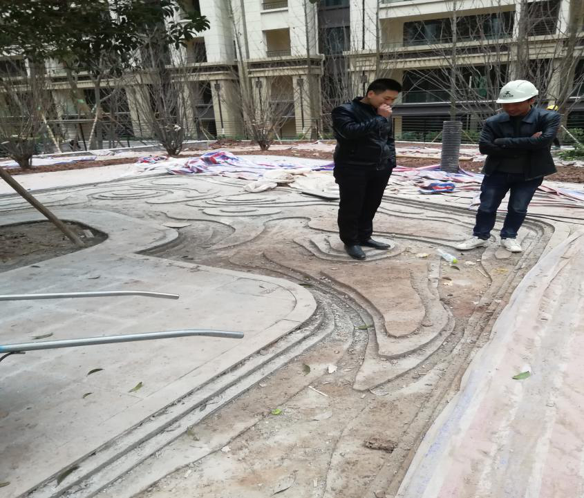 每一次工程的開(kāi)端都是從勘察現(xiàn)場(chǎng)開(kāi)始的,正如大基建設(shè)少不了一磚一瓦、一草一木;完工的情形圖中就已經(jīng)可以窺見(jiàn)了,中間是花紋糾結(jié)的造型,由于細(xì)致性要求極高,我們的水磨石師傅們必須依靠自己的雙手來(lái)一點(diǎn)一點(diǎn)研磨;